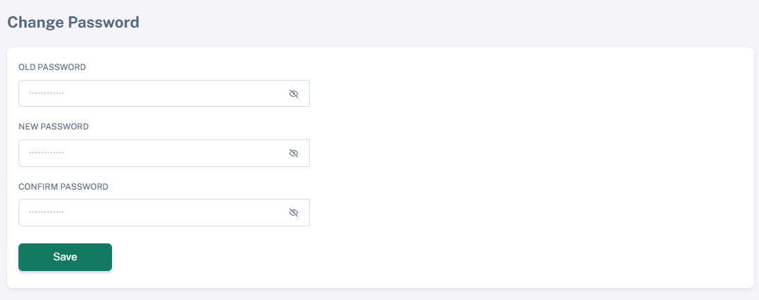 Fitur Change Password merupakan fitur untuk merubah password, ada 3 inputan yang wajib diisi yaitu: Password Lama, Password Baru, Konfirmasi Password Baru.